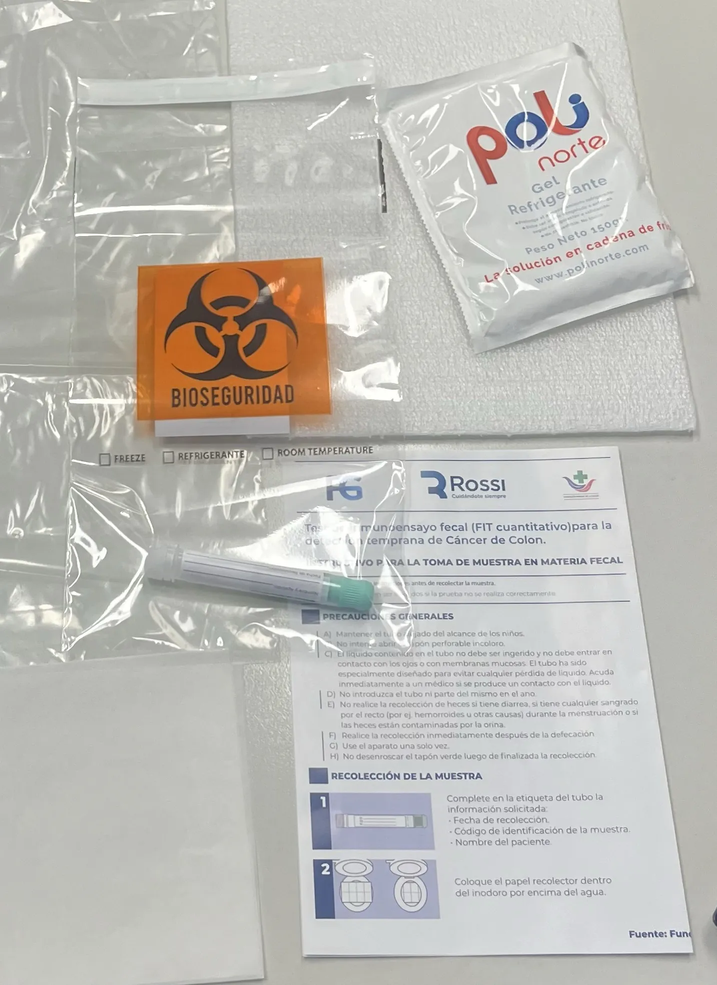 • Gel refrigerante para conservación en traslado.